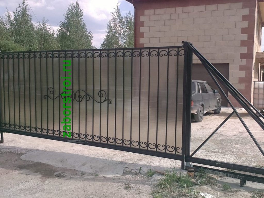 Откатные ворота из поликарбоната пример 2