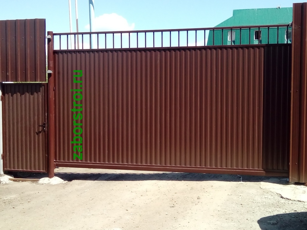 Откатные ворота из профнастила пример 1