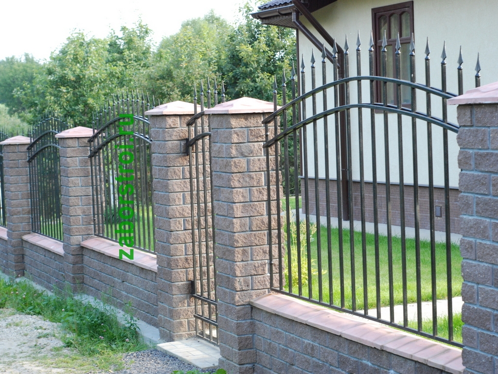 Сварные заборы с кирпичными столбами 80 метров